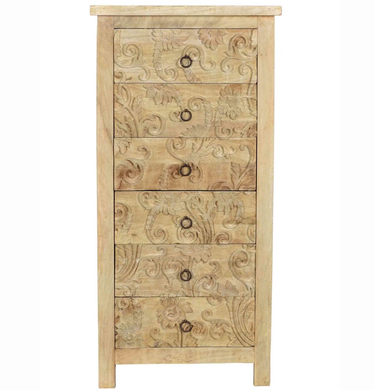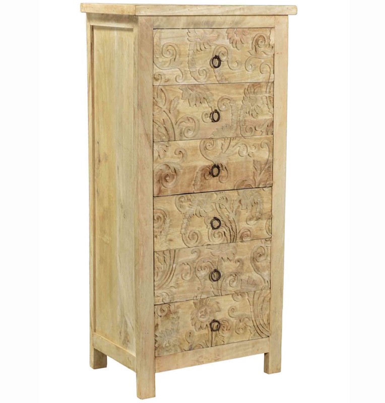 With 6 drawers, a lot of storage room is created with this lovely colored shabby chic cabinet.