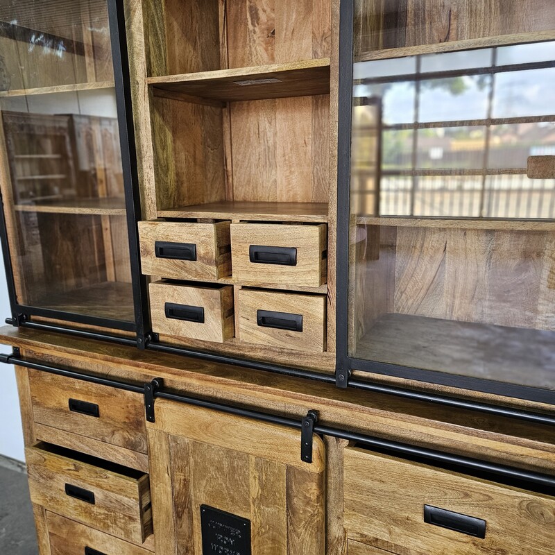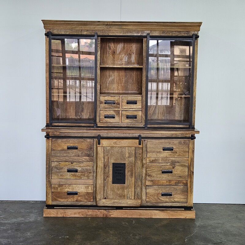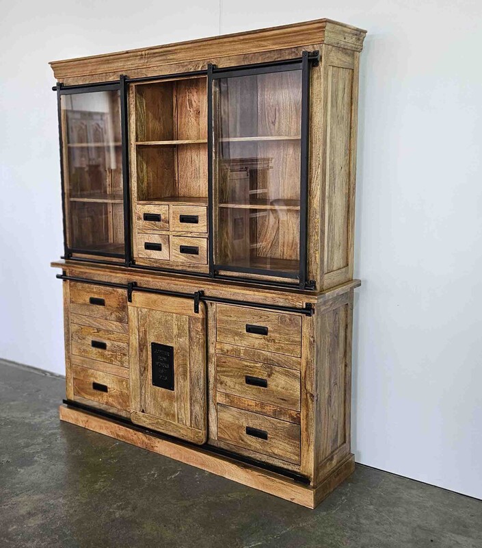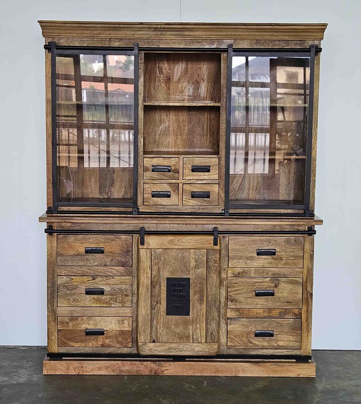 industrial extra drawers mango wall cabinet in mango wood and metal, modern, in perfect condition, for sale in Industrial mango furniture | Teak Paleis