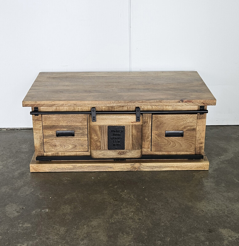 industrial mango salon table in mango wood and metal, modern, in mew condition, for sale in Industrial mango furniture | Teak Paleis
