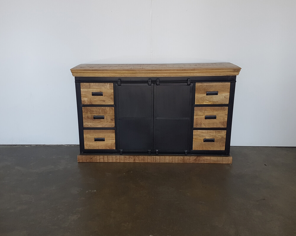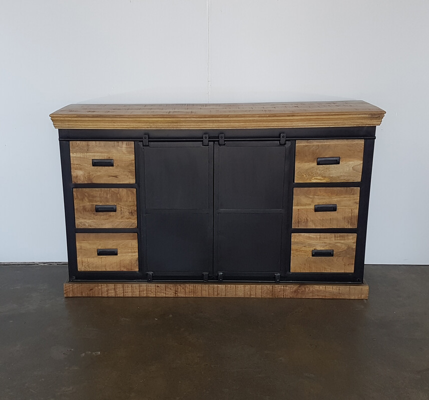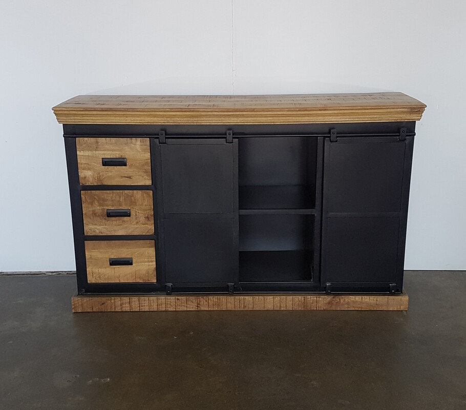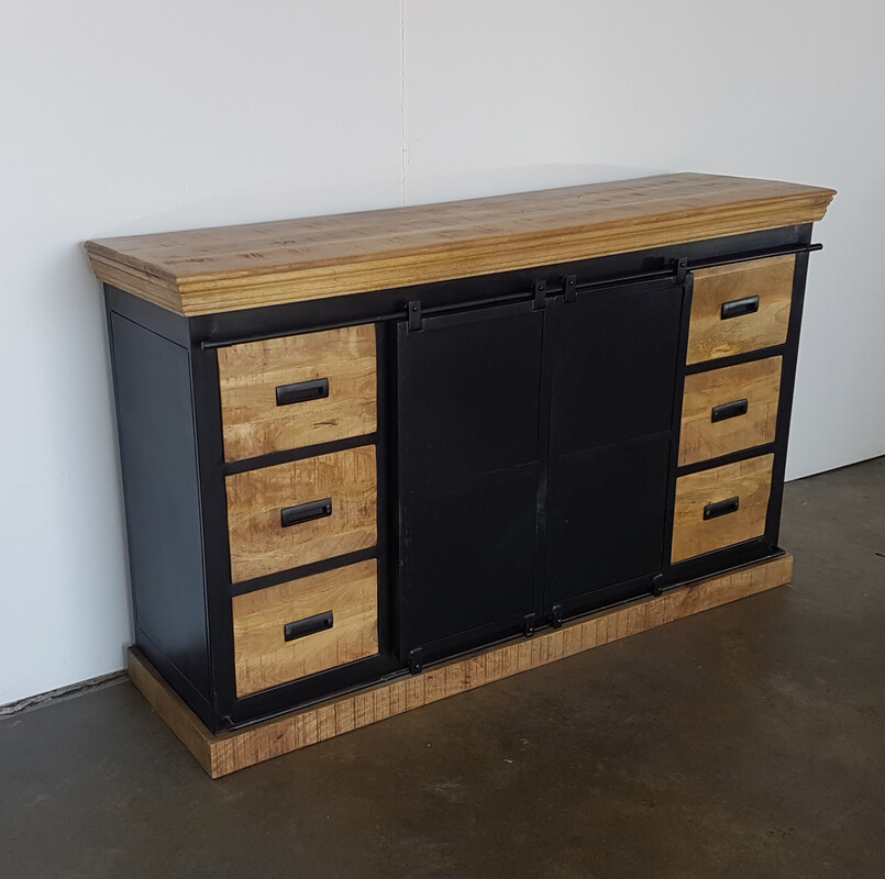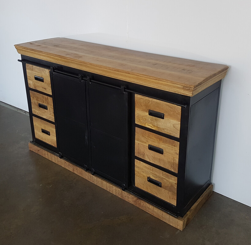 metal black industrial dresser big in metal and mango wood, modern, in new condition, for sale in industrial furniture | Teak Paleis