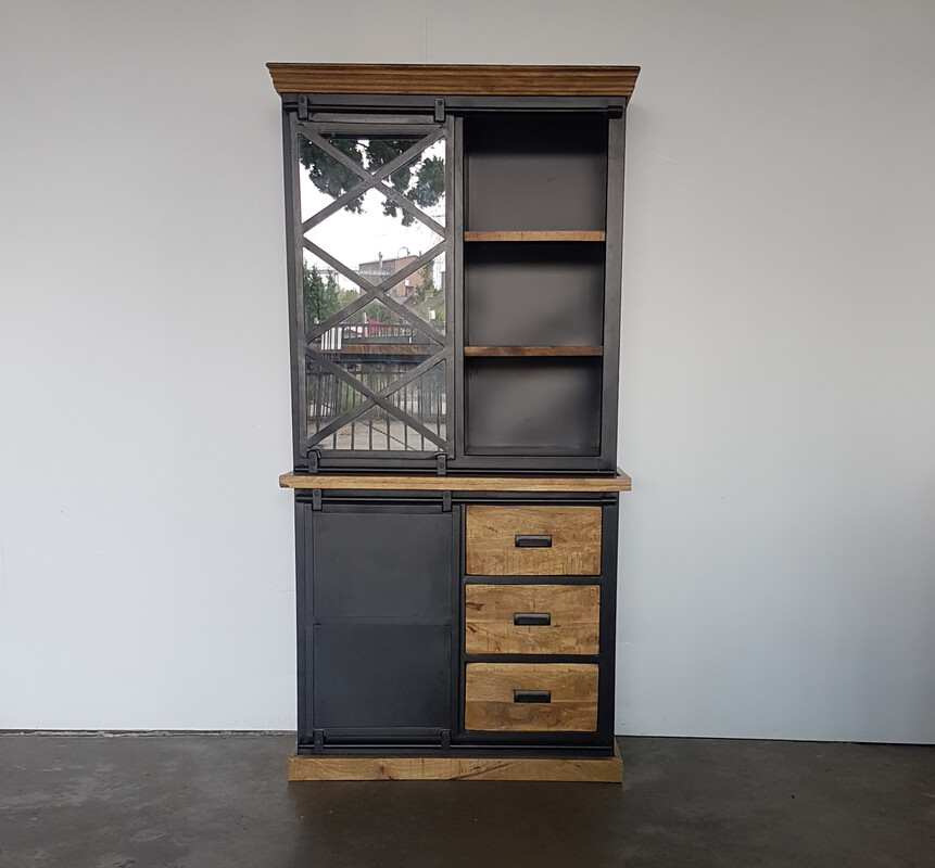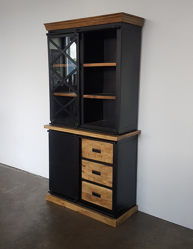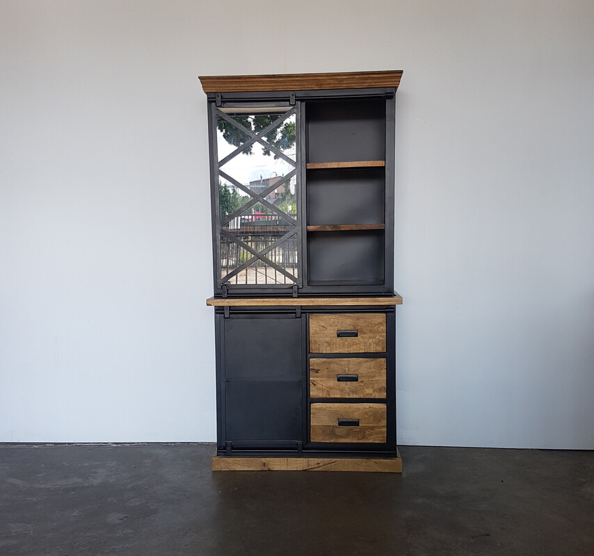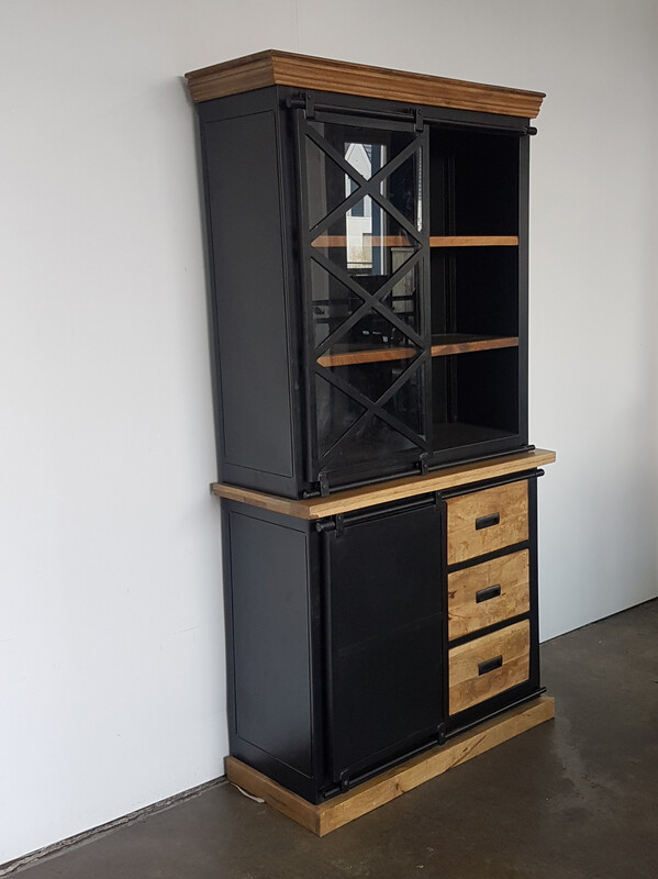 metal black industrial sideboard small in metal and mango wood, modern, in new condition, for sale in industrial furniture | Teak Paleis