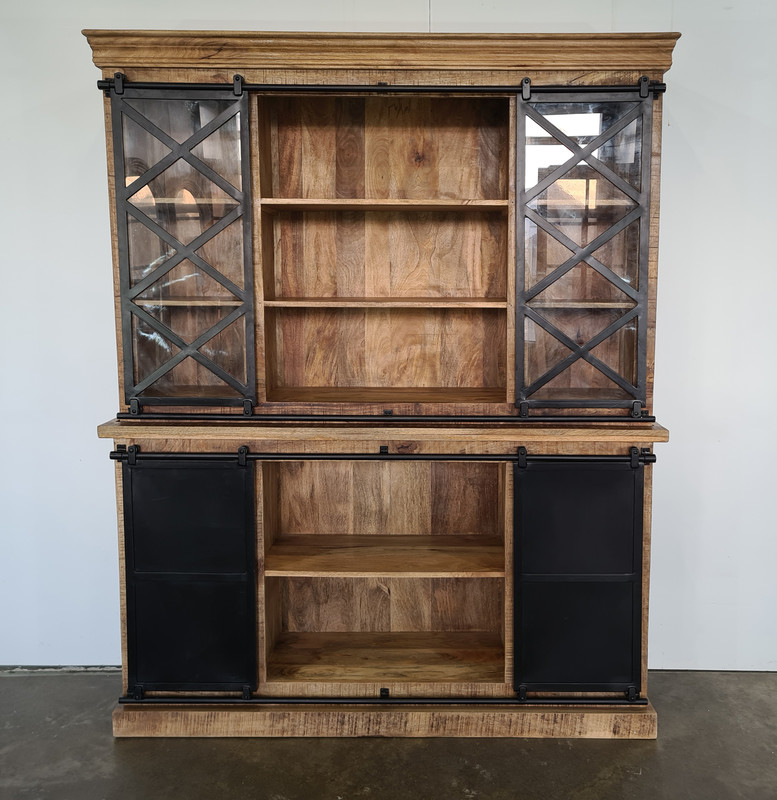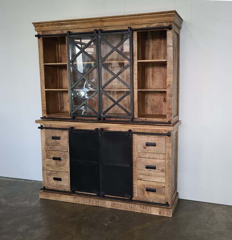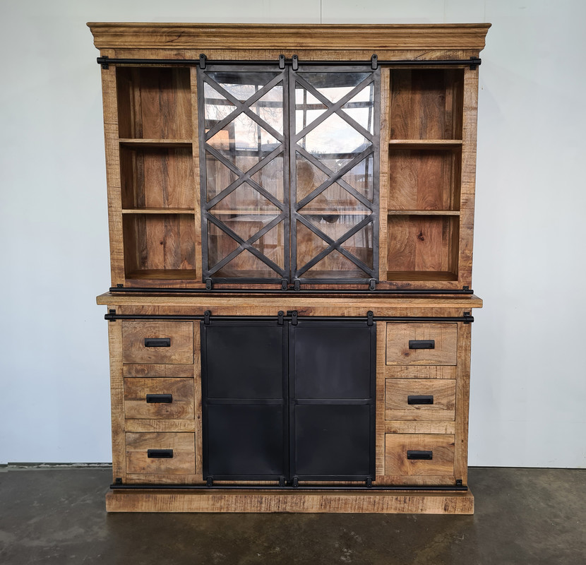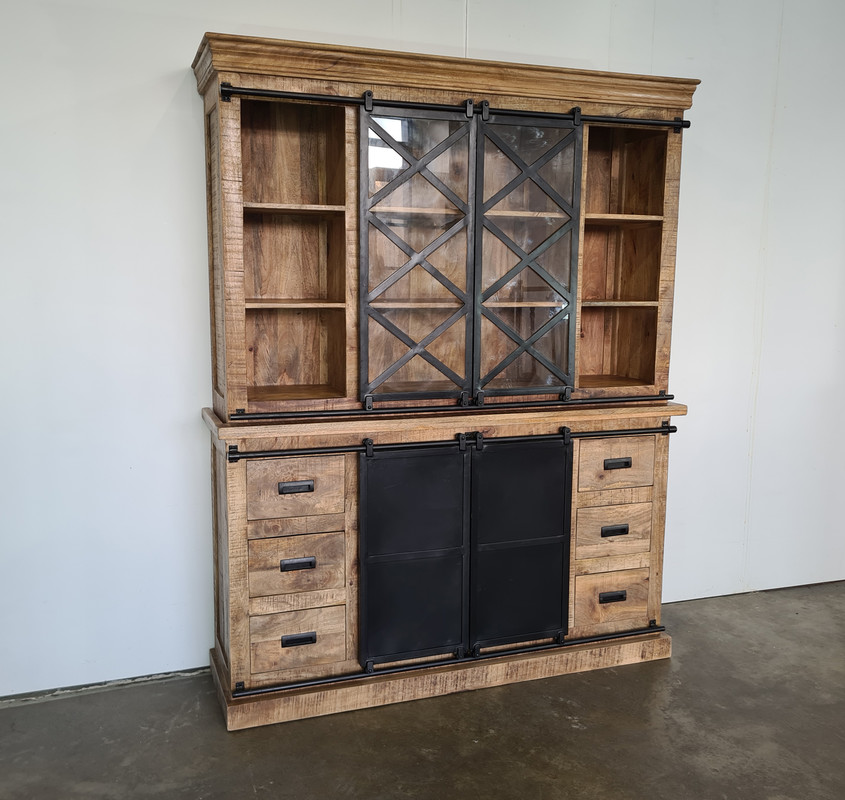 modern industrial buffet cabinet 160 in metal and mango wood, holland vintage