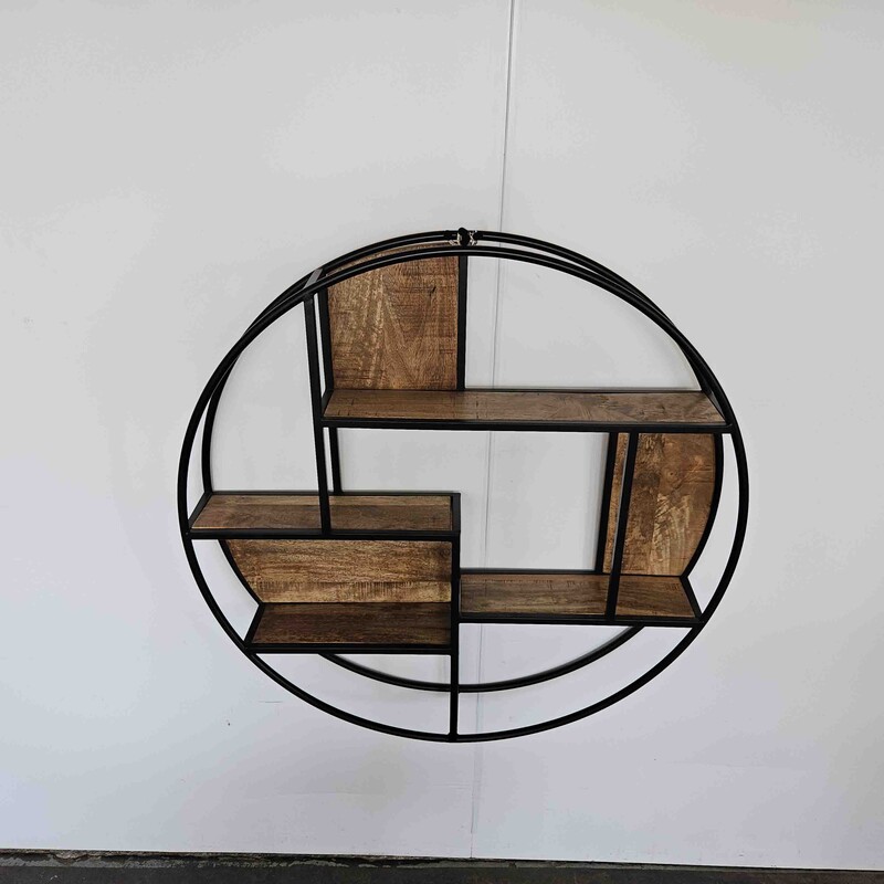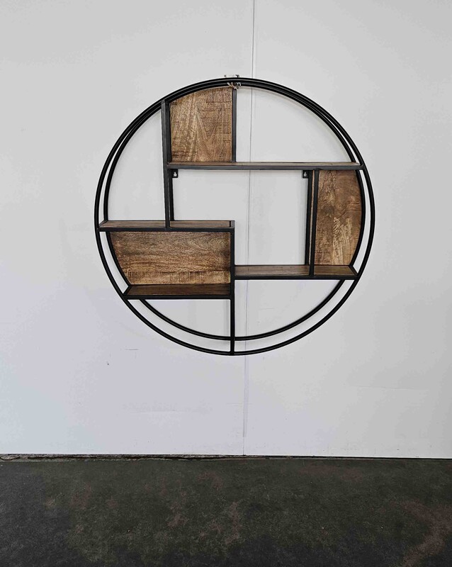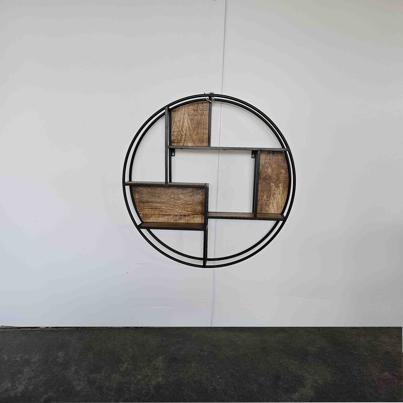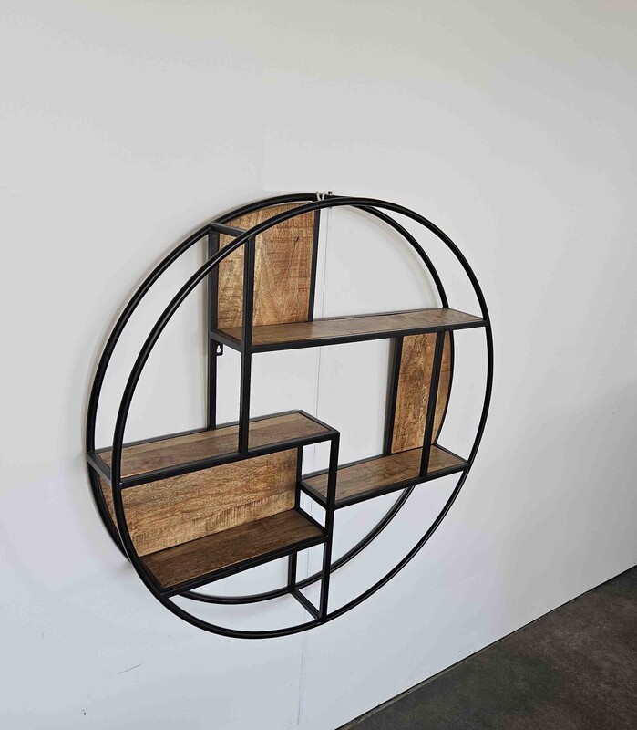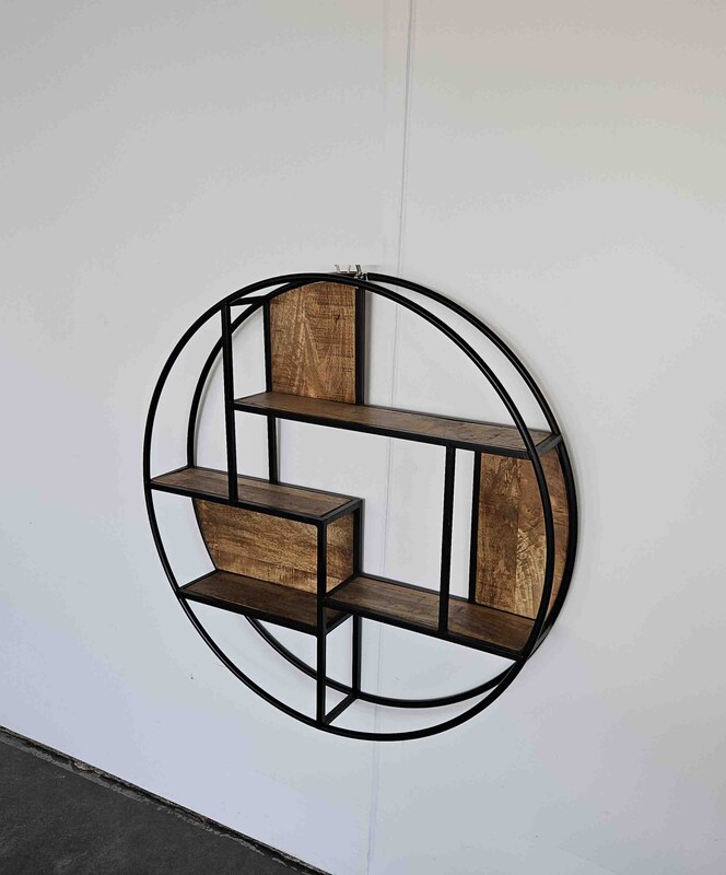rural round industrial wall rack in mangowood and metal, mordern, in nieuw condition, for sale in Industrial mango furniture | Teak Paleis
