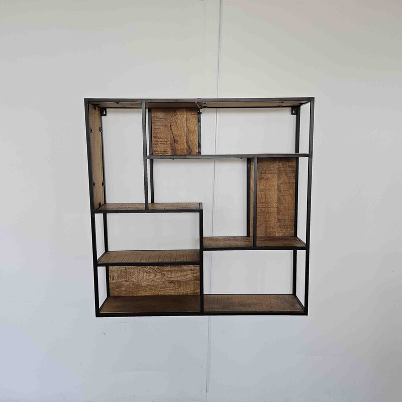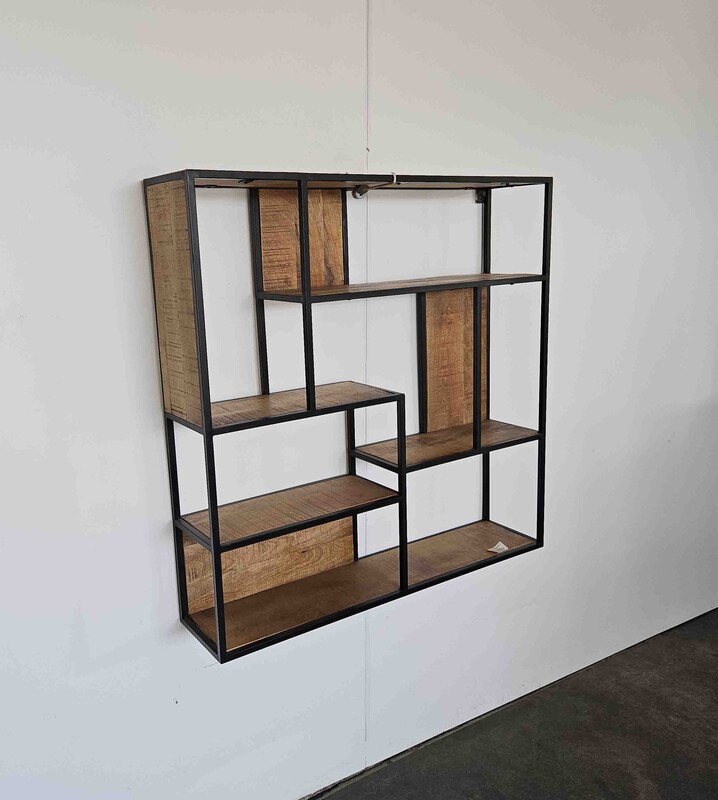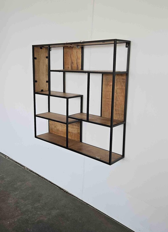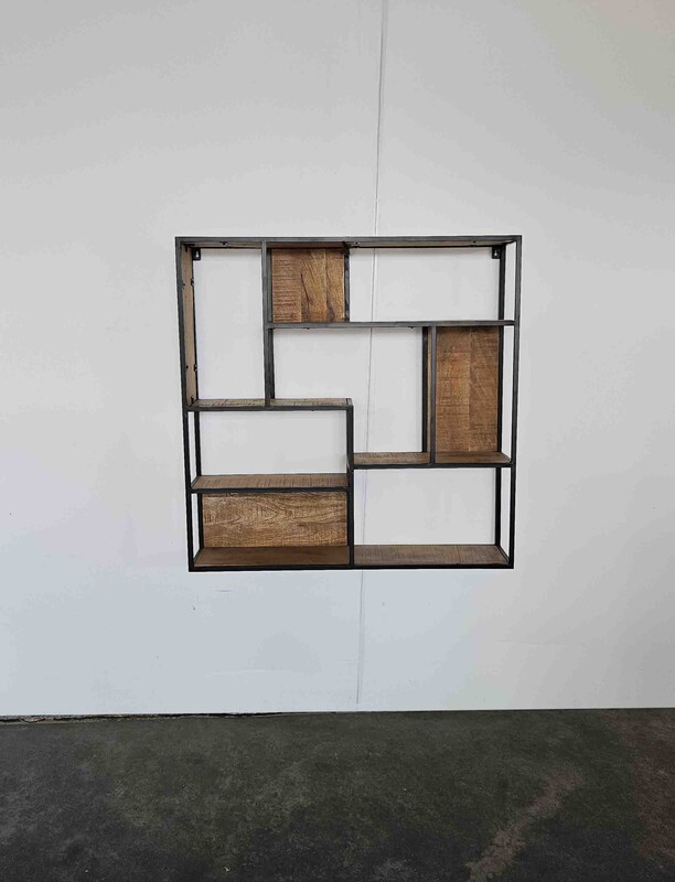 rural square industrial wall rack in mangowood and metal, mordern, in nieuw condition, for sale in Industrial mango furniture | Teak Paleis
