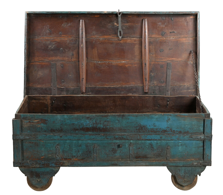 Colorful chest in scrap wood, retro, in perfect condition, for sale in Vintage furniture, tables and chests | Teak Paleis