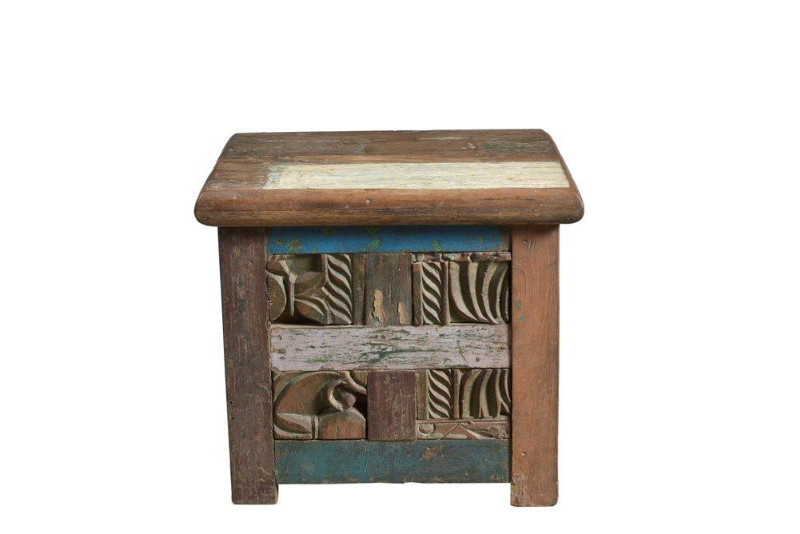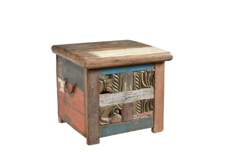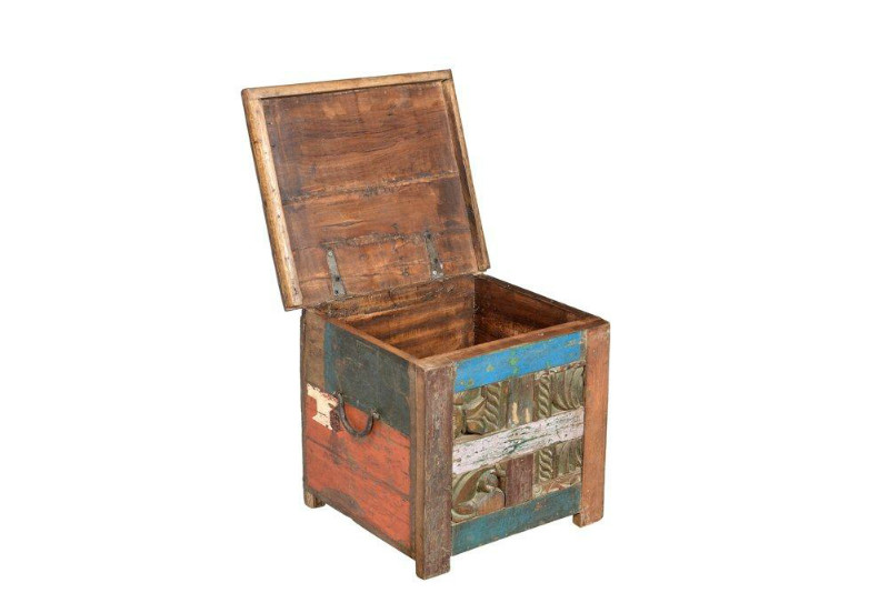 Colorful bchest in scrap wood, vintage, in good condition, for sale in vintage furniture, small furniture | Teak Paleis