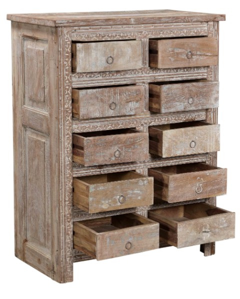 With 14 drawers, a lot of storage room is created with this lovely colored cabinet.