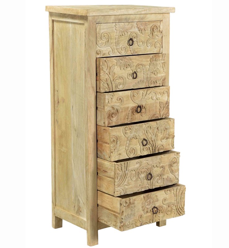 With 6 drawers, a lot of storage room is created with this lovely colored shabby chic cabinet.