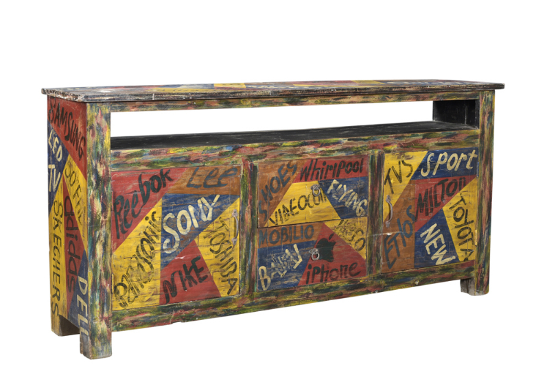 Colorful dresser in scrap wood, Belgium vintage