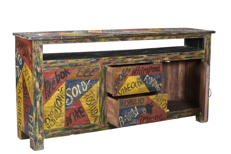 Colorful dresser in scrap wood, vintage, in fine condition, for sale in vintage furniture, dressers | Teak Paleis