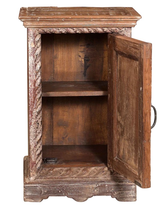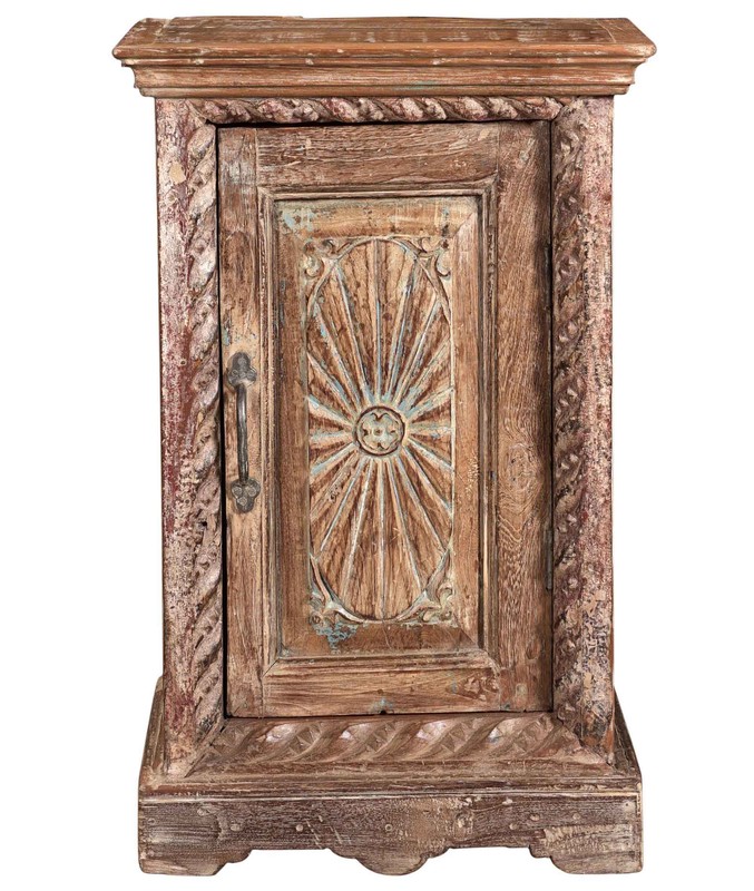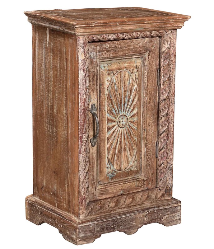 Colorful bedside table with small door bedside table in Scrap wood, vintage, in good condition, for sale in Teak wood Belgium, shabby vintage furniture | Teak Paleis
