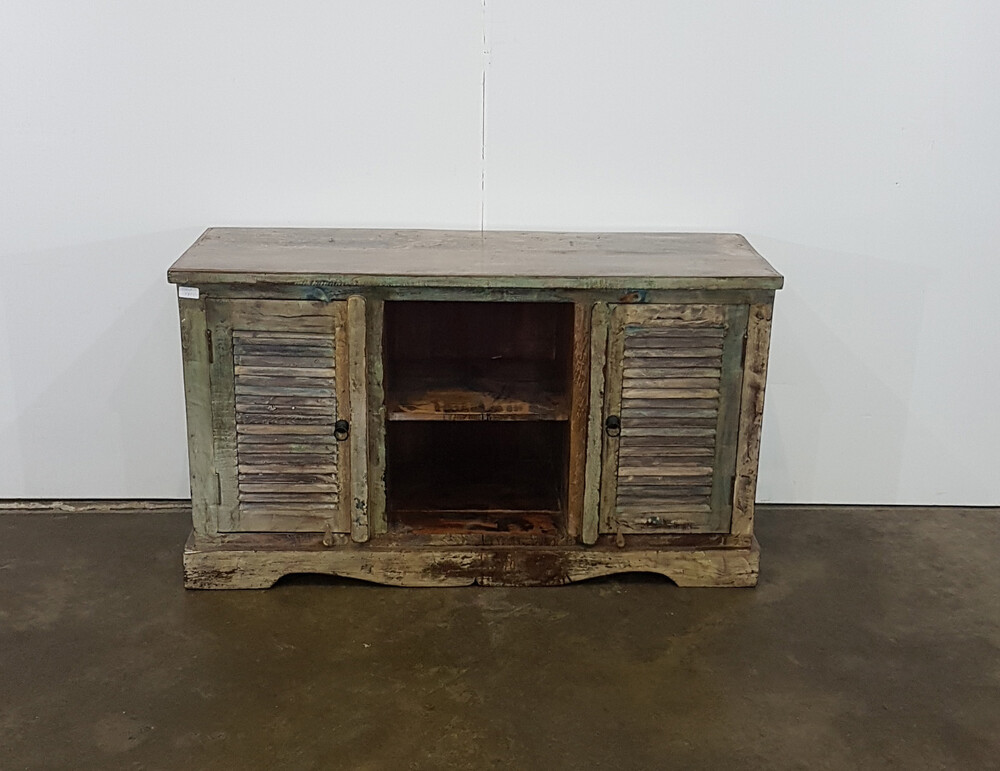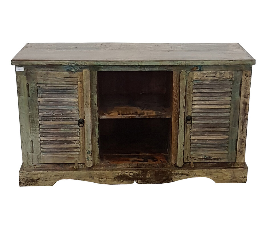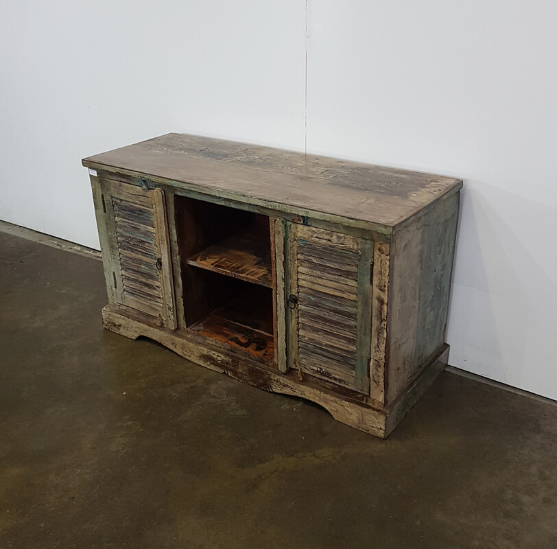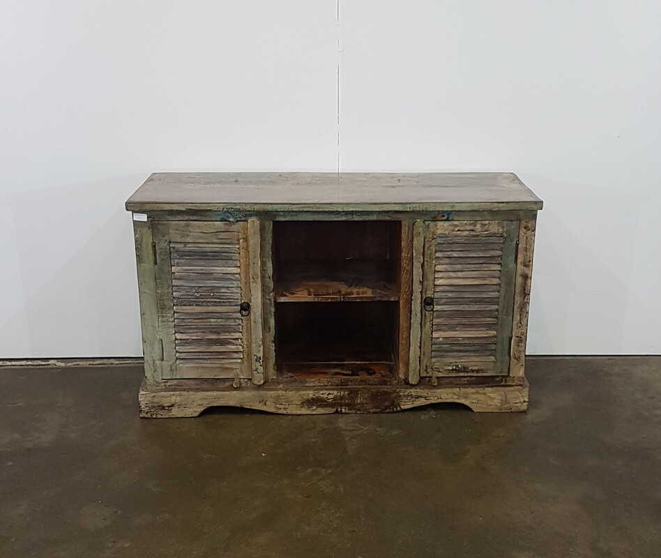 Two slatted doors tv stand in recycled wood, vintage, in fine condition, for sale in vintage furniture, TV furniture | Teak Paleis